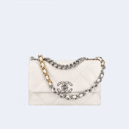 • 샤넬 19백 미디움 램스킨 실버 메탈 화이트