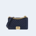 • 샤넬 보이백 미디움 카프스킨 보이백 네이비 골드