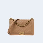 • 샤넬 보이백 미디움 카프스킨 보이백 카멜 골드