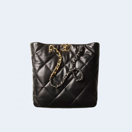 • 샤넬 19백 샤이니 램스킨 골드 메탈 블랙