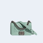 • 샤넬 보이백 스몰 카프스킨 민트 실버