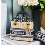 DIOR 디올 미니 백 내추럴 위커 & 블루 Dior Oblique 자카드
