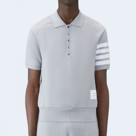 • 톰브라운 라이트 그레이 코튼 오토맨 립 4-바 카라티셔츠