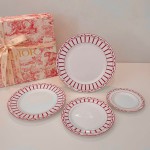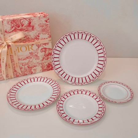[Monsieur Di*or 4⃣️세트 플레이트] 5009880 Monsieur Di*or라는 이름의 이 투톤 본차이나 디너 세트는 크리스찬 디올의 삶의 예술에 대한 찬가로, 창업자와 그의 친구인 장 피에르 프레르(Jean-Pierre Frère)가 만든 디자인을 재해석한 아이코닉한 제품입니다. 1955년에 디자인된 빨간색과 흰색 줄무늬 시리즈 ~ 그래픽이 낮고 고급스럽습니다. 시대를 초월한 이 작품은 Cordelia de Castellane이 디자인한 현대적인 작품과 완벽하게 어울립니다 구성: 12인치 플레이트 1⃣️ 10인치 플레이트 1⃣️ 8인치 1⃣️ 6인치 1⃣️
