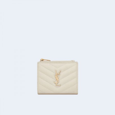 • 생로랑 모노그램 2단 지갑 화이트 골드