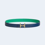 • 에르메스 MORS H 리버서블 그린 블루 벨트 금장 24mm