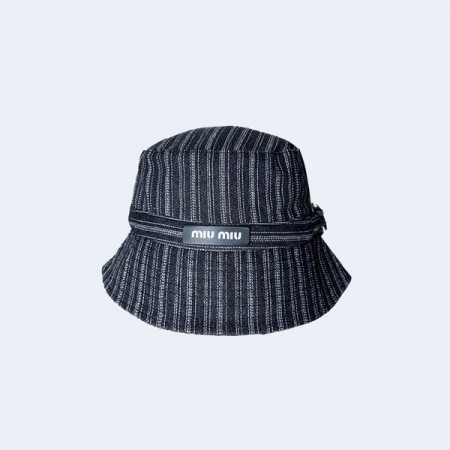 • 미우미우 스트라이프 데님 블랙 버킷 햇
